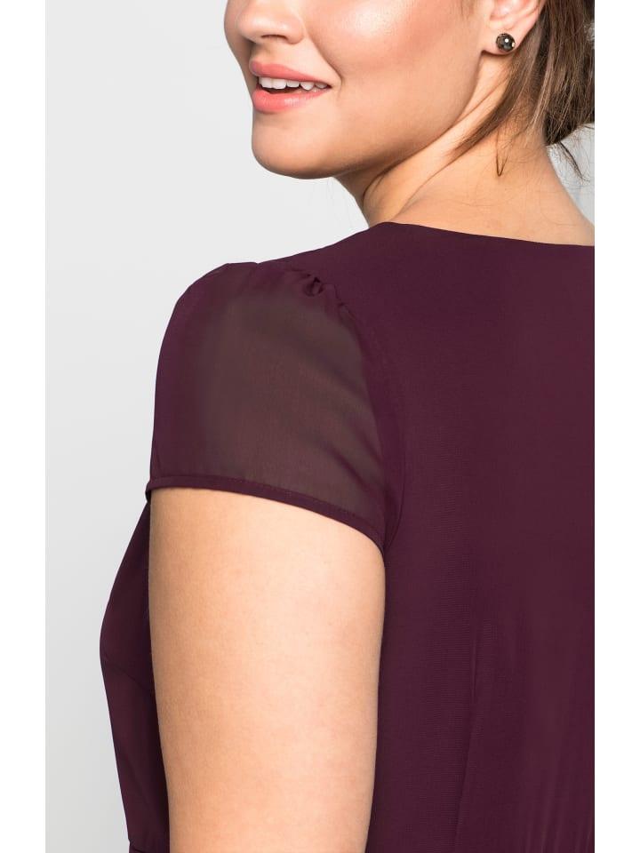 Это вечернее платье придаст вашему образу пленительно элегантный вид. Короткие рукава-крылышки слегка прозрачны, а V-образный вырез подчеркивает зону декольте. Юбка, длиннее сзади, чем спереди, обещает особенно красивую драпировку. Платье застегивается на молнию сбоку.