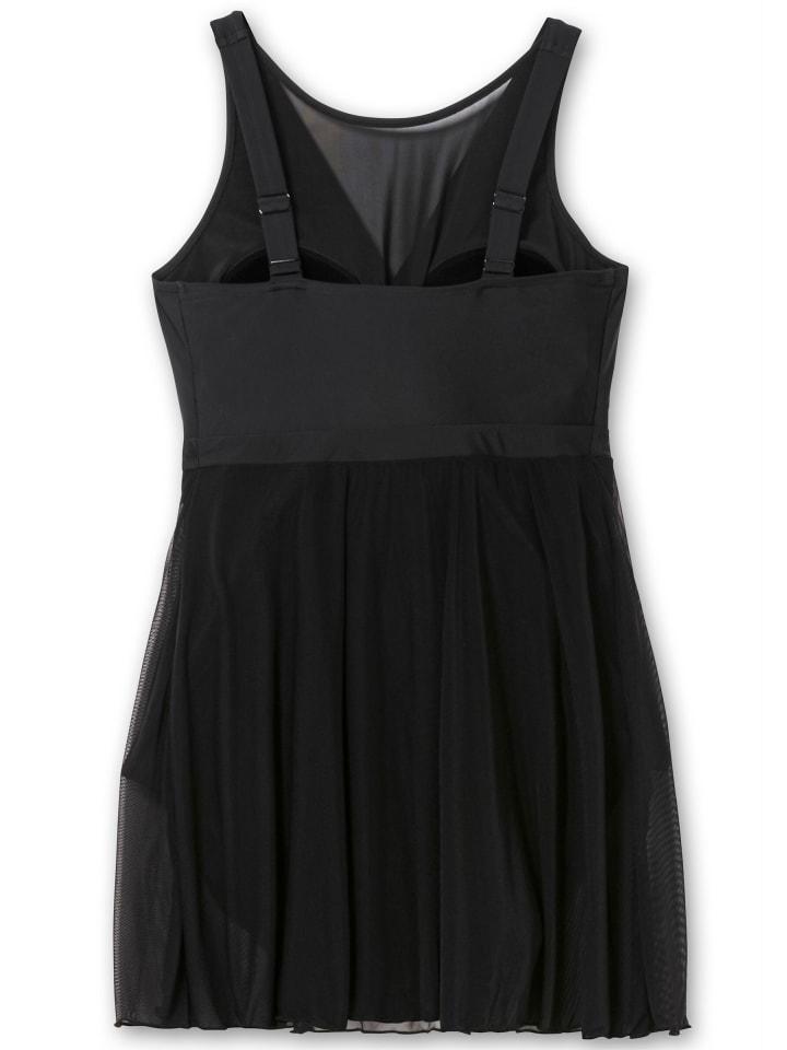 Купальник с сетчатыми деталями. Элегантный эффект запаха дополняется изысканной сетчатой вставкой на вырезе. Мягкие чашечки с подкладкой и стабилизирующая резинка под грудью обеспечивают комфорт. Расклешенная, слегка прозрачная юбка из сетки со встроенными трусиками подчеркивает женственный образ.