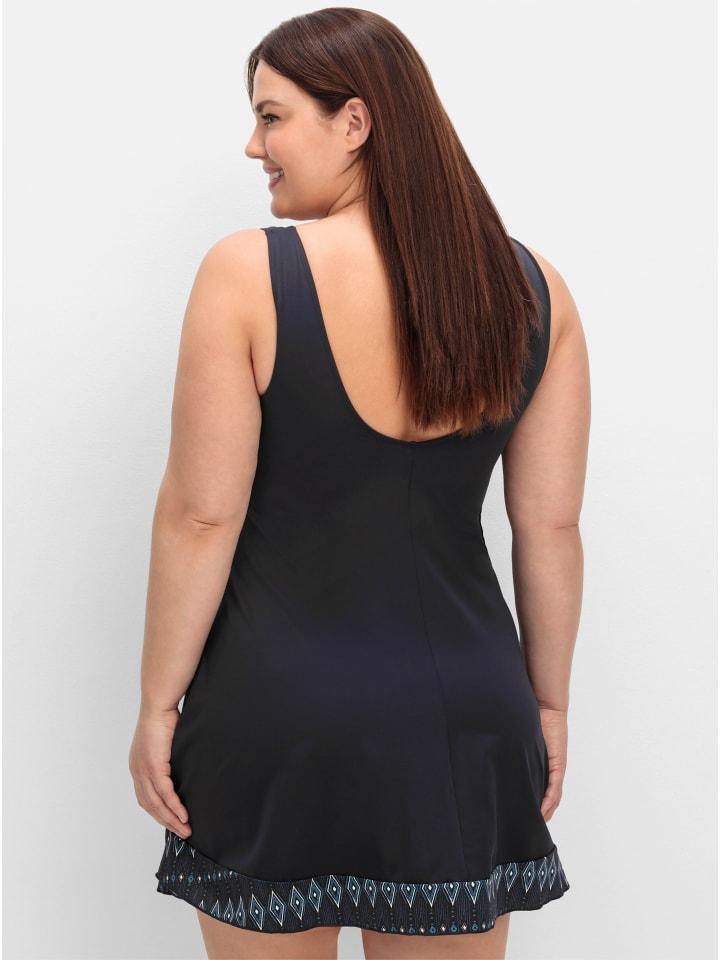 Купальник с вшитыми и фиксированными трусиками. Подоконник и V-образный вырез подчеркнуты контрастным геометрическим узором. Мягкие формованные чашки с подкладкой создают красивое декольте даже без косточек.
