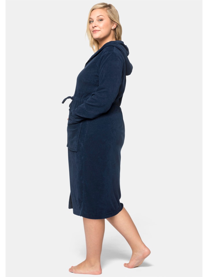 Халат на молнии. Этот халат длиной до колена с капюшоном. Талия регулируется шнурком и завязывается. Практичные большие карманы идеально дополняют дизайн.