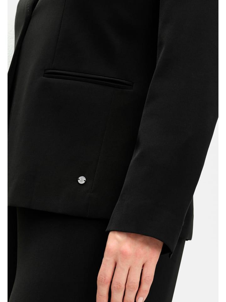 Пиджак короткого приталенного фасона. С выгодно подчеркивающим фигуру воротником с лацканами и модной застежкой на 1 пуговицу он станет идеальным офисным компаньоном, но его также можно носить с джинсами в повседневном стиле. Продуманное расположение швов спереди и сзади выгодно подчеркивает фигуру, а прорезные карманы и пуговицы на манжетах рукавов дополняют ухоженный вид. В сочетании с узкими или широкими брюками из нашей деловой коллекции он превращается в современный костюм.