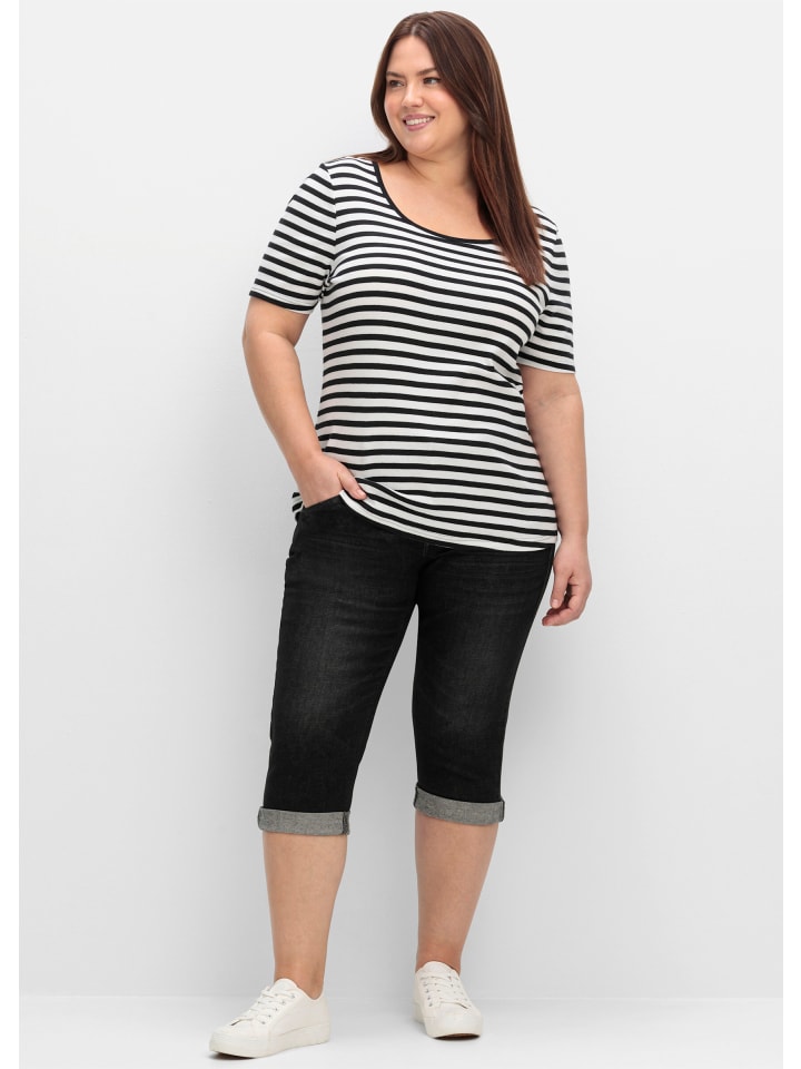 Эти узкие джинсы впечатляют своей длиной капри и простым дизайном. Благодаря этому они отлично сочетаются с летними нарядами. Вышитые задние карманы добавляют игривости.