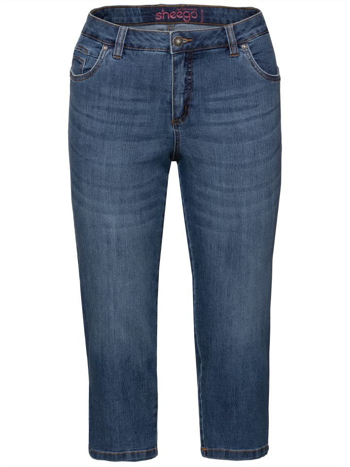 Узкие джинсы-стрейч модной длины капри. Брюки можно подворачивать по отдельности, что придает им особенно современный вид благодаря эффектам использования. Декоративная вышивка на задних карманах дополняет повседневный образ.
