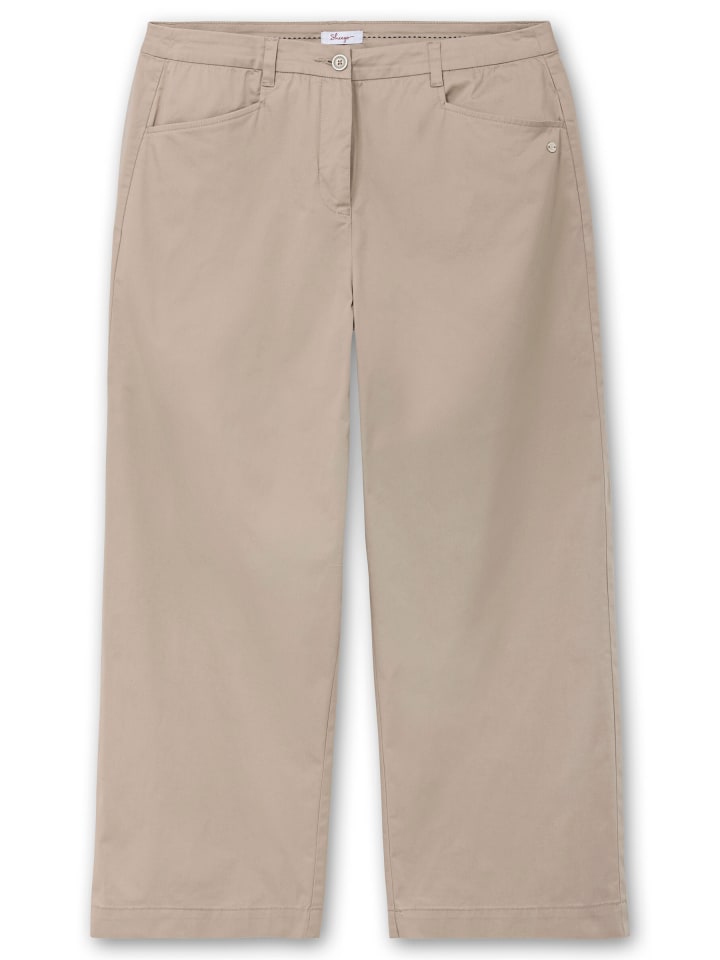 Широкие брюки в стиле чинос. Застегиваются на пуговицу и молнию, а шлевки для ремня перекрещиваются сзади, чтобы пояс не выпирал даже в сидячем положении. Два передних кармана и два прорезных кармана с декоративной строчкой сзади дополняют классический, четкий образ.