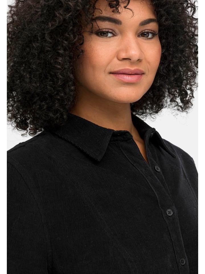 Платье-рубашка из тонкого вельвета длиной до колена. Платье стильное с рубашечным воротником, планкой на пуговицах по всей длине и длинными рукавами с манжетами. Образ особенно непринужденный с закатанными рукавами, которые можно закрепить на хлястике и пуговице. Практичные боковые карманы идеально дополняют дизайн.