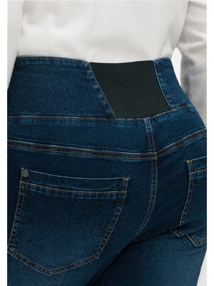 Эти облегающие джинсы имеют посадку ANNE. Благодаря очень высокому поясу они хорошо облегают живот, а эластичная вставка сзади не позволяет брюкам выпирать - идеально подходит для фигур с широкими бедрами, узкой талией и небольшим животом. Ширина подола около 29,5 см.