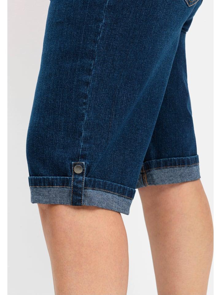 Джинсовые шорты-бермуды с удобным эластичным поясом. Манжеты на штанинах можно закрепить хлястиком и пуговицей, что придает шортам спортивный вид. Индивидуальная стирка - повседневное дополнение. Классические пять карманов дополняют простой образ.