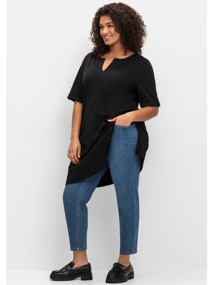 Эластичные джинсы суперудобного, сверхгибкого качества. Круговой эластичный пояс со шлевками, пуговицей и молнией обеспечивает еще больший комфорт. Декоративные прорезные карманы, накладные карманы сзади и индивидуальная стирка дополняют модный крой.