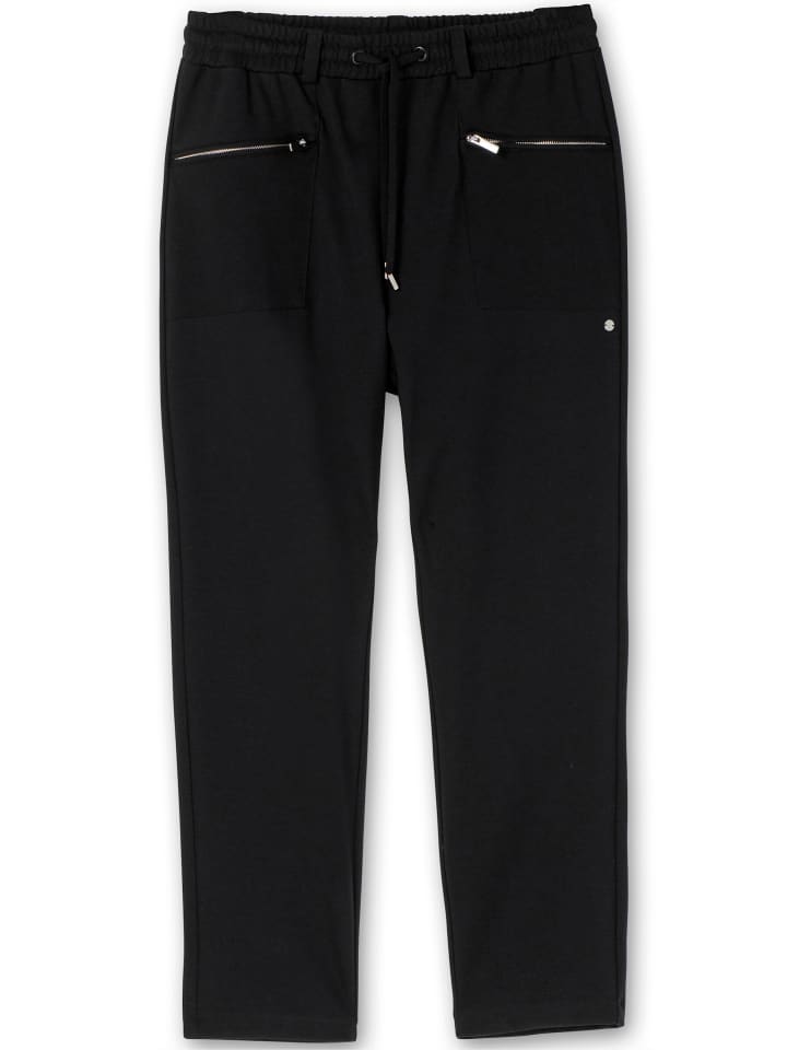 Узкие брюки в стиле джоггеров. Эластичный пояс со шлевками и завязкой обеспечивает комфортную носку. Большие накладные карманы на молнии спереди создают модный карго-образный вид. Имитация прорезных карманов сзади аккуратно дополняет образ.