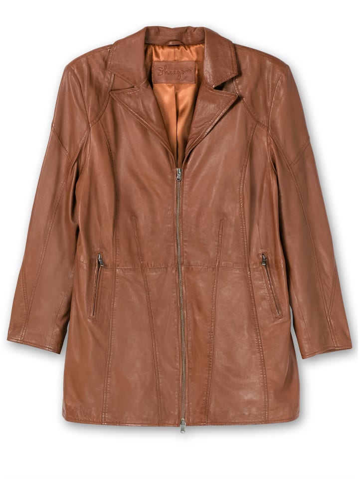 Кожаная куртка удлиненного, слегка приталенного кроя. Современный отложной воротник и кокетка в байкерском стиле характеризуют ее внешний вид. Двусторонняя молния, которую можно расстегивать сверху и снизу, практична. Карманы также оснащены эффектными молниями. Декоративные разделительные швы подчеркивают силуэт.