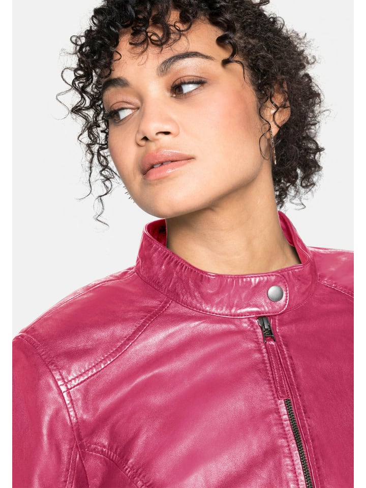 Кожаная куртка из мягкой овчины с наппой. Характерный байкерский крой с воротником-стойкой и длинной молнией делает ее незаменимой вещью вне времени. Воротник-стойка застегивается на кнопку, а два передних кармана на молнии. Декоративные разделительные швы придают силуэту его характерную форму.