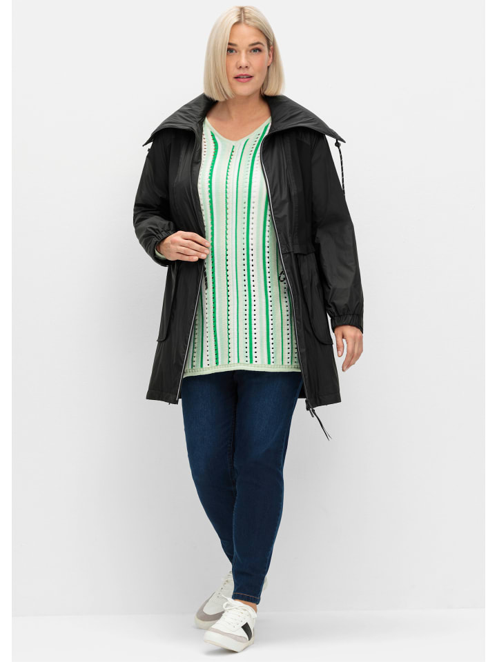 Куртка для активного отдыха из легкой водоотталкивающей ткани. Эта практичная куртка дополнена модными деталями, такими как большой воротник и контрастные кокетки спереди и сзади. Куртка застегивается на двустороннюю молнию, боковые карманы также застегиваются на молнии. Внутренний шнурок позволяет затянуть свободный крой на уровне талии, а боковые молнии обеспечивают максимальную свободу движений.