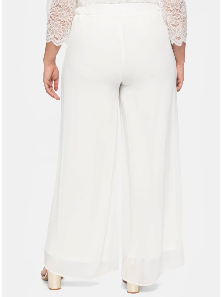 • В образе 2 в 1 • Удобный фасон, который легко надевать, с эластичным поясом • Облегающий крой штанин • Легкий структурированный и мягко струящийся шифон • Плотная подкладка из эластичного трикотажа • Широкие брюки из шифона. Воздушный крой палаццо и характерная плавная линия брючин обеспечивают женственную элегантность. Для дополнительного комфорта брюки оснащены удобным эластичным поясом. Подробнее о посадке • Облегающие, широкие штанины. Подробнее о материале • Элегантная ширина в сочетании со слегка структурированным, мягко струящимся шифоном делает эти брюки настоящей изюминкой стиля для особых случаев - в сочетании с подходящим верхом они превращаются в свадебный наряд. Эластичная подкладка из комфортного трикотажа делает брюки непрозрачными. Материал: 100% полиэстер