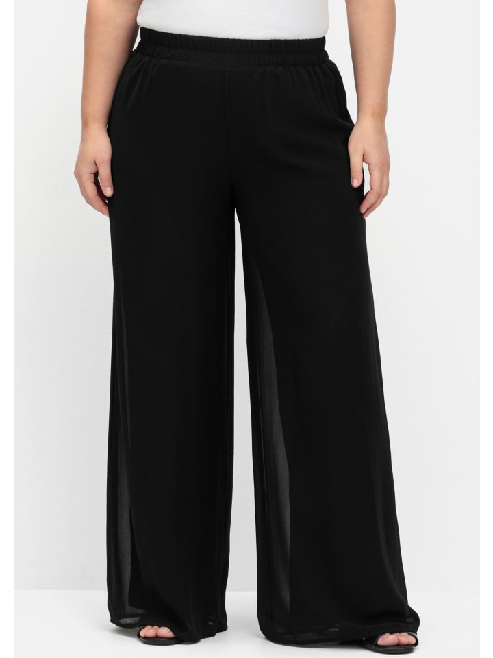 • В образе 2 в 1 • Удобный фасон, который легко надевать, с эластичным поясом • Облегающий крой штанин • Легкий структурированный и мягко струящийся шифон • Плотная подкладка из эластичного трикотажа • Широкие брюки из шифона. Воздушный крой палаццо и характерная плавная линия брючин обеспечивают женственную элегантность. Для дополнительного комфорта брюки оснащены удобным эластичным поясом. Подробнее о посадке • Облегающие, широкие штанины. Подробнее о материале • Элегантная ширина в сочетании со слегка структурированным, мягко струящимся шифоном делает эти брюки настоящей изюминкой стиля для особых случаев - в сочетании с подходящим верхом они превращаются в свадебный наряд. Эластичная подкладка из комфортного трикотажа делает брюки непрозрачными. Материал: 100% полиэстер