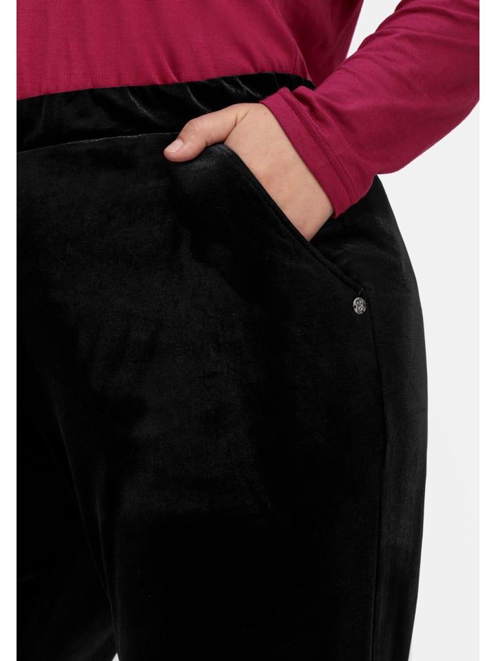 Брюки из бархата прямого кроя. Мягкий, слегка мерцающий бархат создает праздничный и роскошный эффект; частично эластичный пояс сзади обеспечивает удобную посадку брюк на талии. Прорезные карманы спереди и декоративные прорезные карманы сзади придают им изысканный вид. Идеальный компаньон для вечеринки!