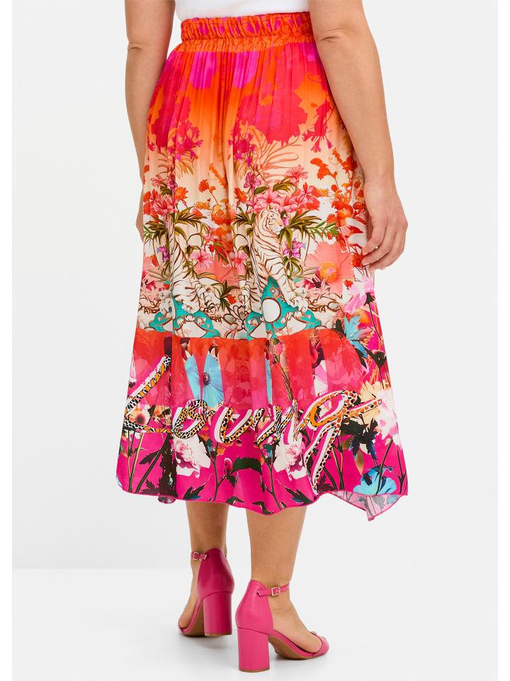 Юбка длиной до икр от sheego loves miss goodlife. Летний разноцветный микс узоров добавляет яркости образу. Эластичный пояс обеспечивает комфорт, а боковые карманы практичны. Эта юбка с слегка расклешенным кроем длиной до икр и мягким струящимся вискозным атласом элегантно облегает фигуру и создает динамичный силуэт.
