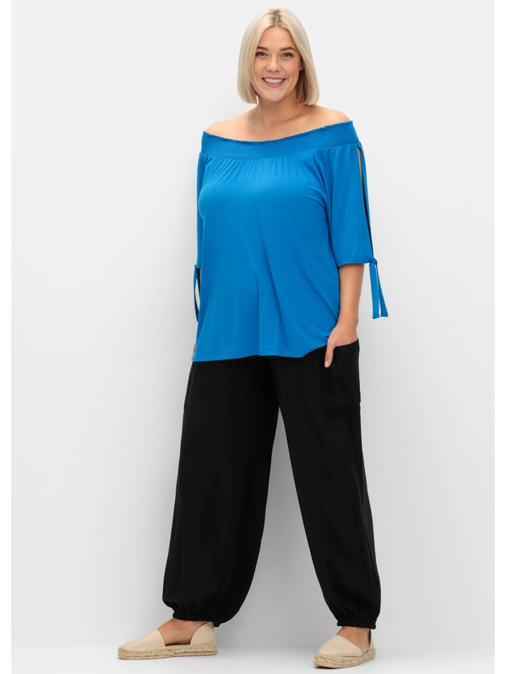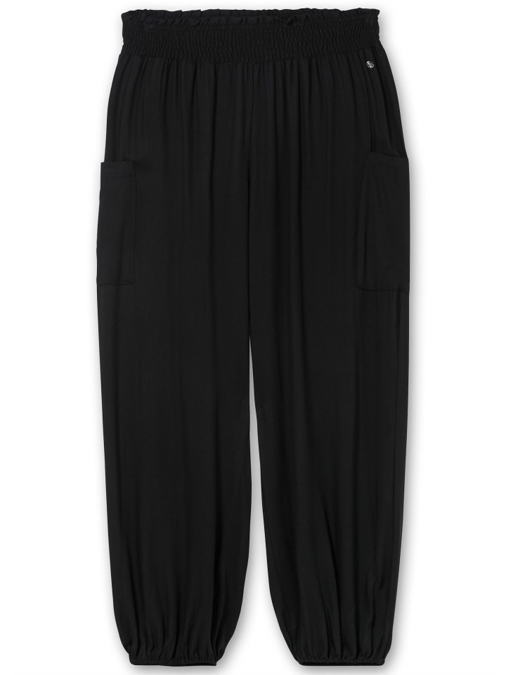 Брюки с присборенным поясом и эластичными манжетами. Эти воздушные, легкие брюки - настоящая универсальная вещь - как для неспешной прогулки по городу, так и для похода на пляж. Боковые карманы и широкий, присборенный пояс обеспечивают большой комфорт, а эластичные манжеты на штанинах дополняют дизайн в спортивном стиле.