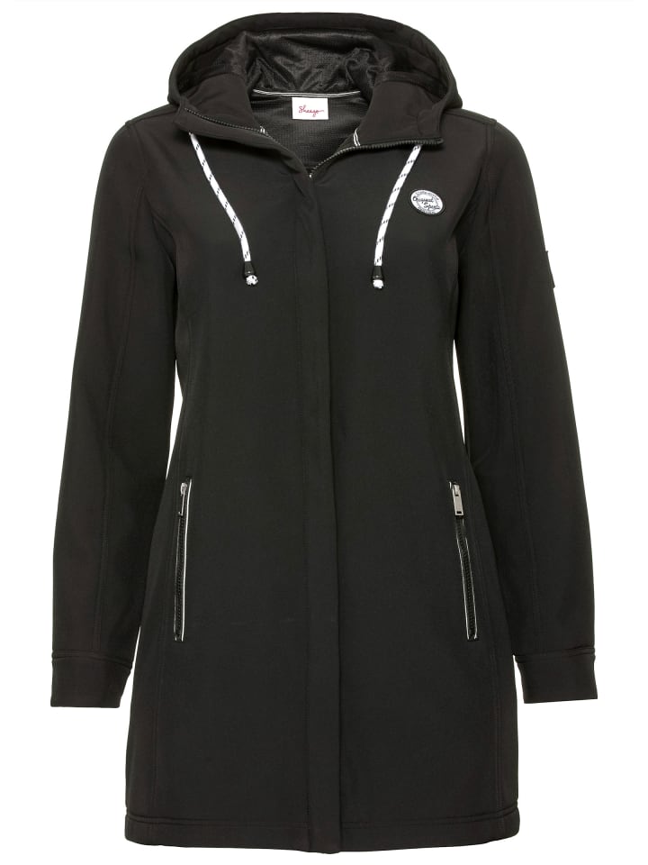 Куртка Softshell с капюшоном. Мягкая флисовая подкладка прекрасно согревает, а высокий воротник и капюшон с кулиской и сетчатой подкладкой защищают от холодного ветра. Скрытая, практичная двусторонняя молния и боковые карманы, также с молниями и контрастной окантовкой, делают эту длинную куртку идеальным спутником для активного отдыха. Нашивки на груди и рукавах добавляют спортивный акцент. Наш совет: не используйте кондиционер для белья, чтобы водоотталкивающие свойства сохранялись дольше.