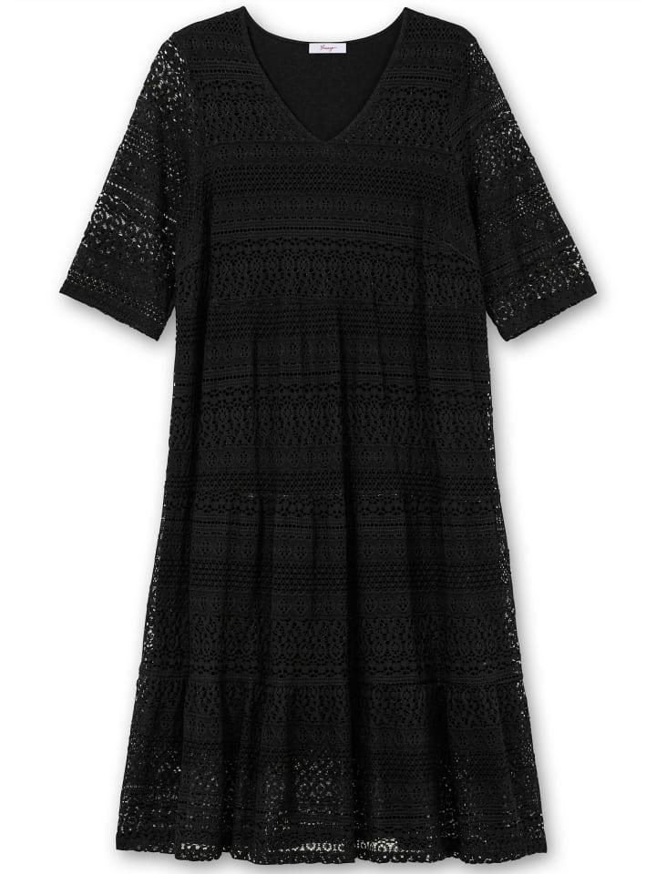 Слегка эластичное кружево изготовлено из мягкой и приятной на ощупь хлопковой смеси. Удобная и эластичная трикотажная подкладка доходит до колена и делает платье непрозрачным у тела.