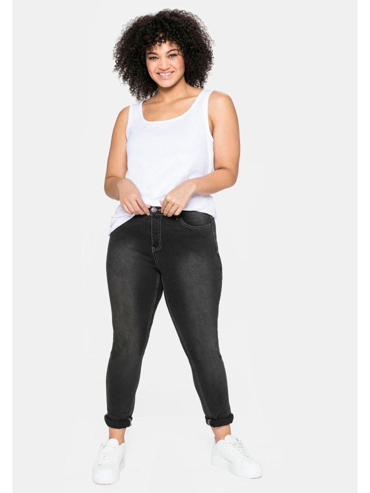 Майка на широких бретелях. Благодаря классическому круглому вырезу горловины она идеально подходит для ношения как самостоятельная вещь.