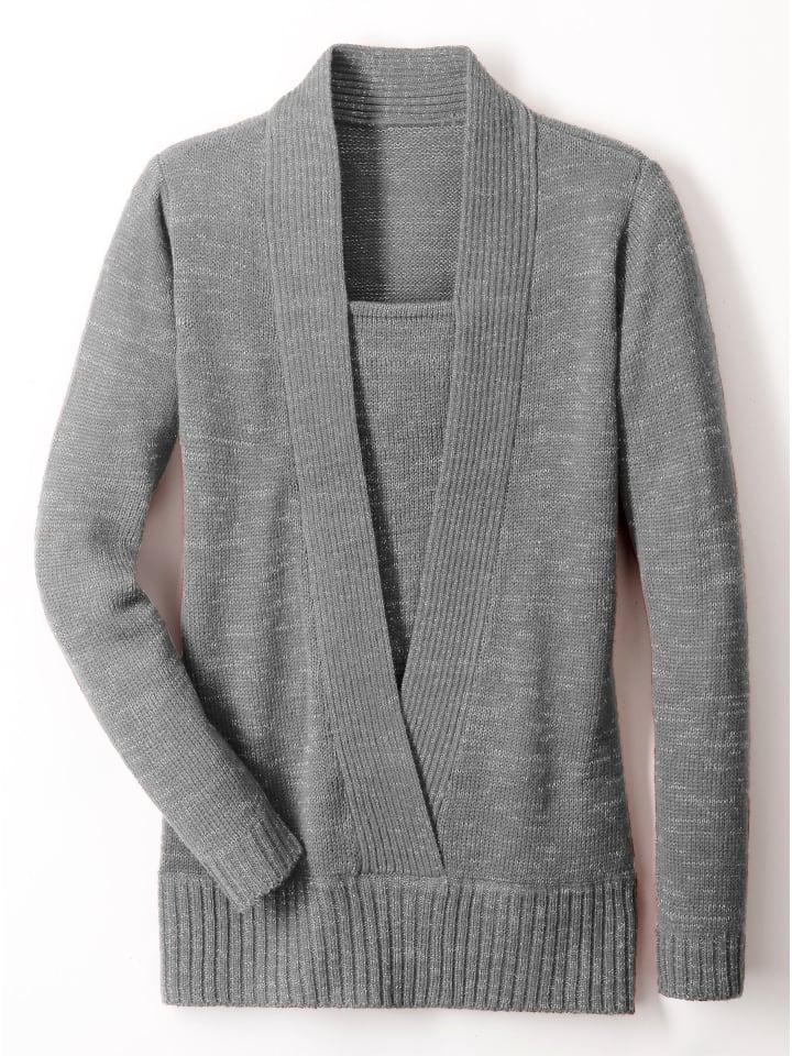 Для вашего ослепительного образа! Блестящий свитер со вставкой 2-в-1 и шалевым воротником. Рукава и подол - резинка.