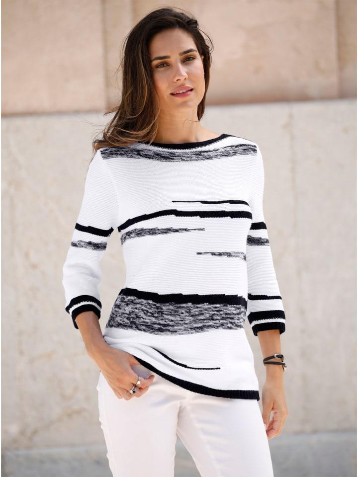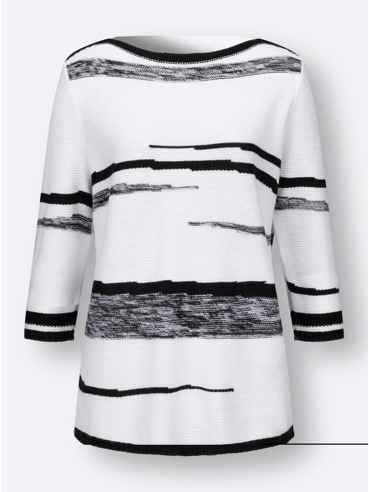 Ваш новый фаворит! Этот свитер с вырезом лодочкой выполнен в технике интарсия, а не в технике принта! Манжеты подчеркнуты контрастным цветом. Удобные рукава длиной 3/4.