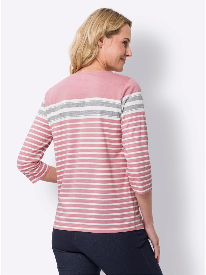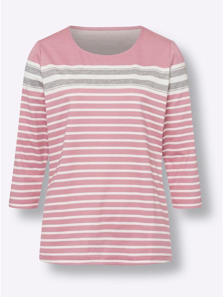 Рубашка с рукавом 3/4 по отличной цене - благодаря качеству хлопка она очень приятна на ощупь, а рисунок в виде полосок делает ее свежей и современной.