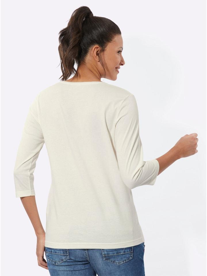 Гарантированно вызовет улыбку на вашем лице: рубашка с рукавом 3/4 и принтом спереди. Круглый вырез, приятное для кожи качество.