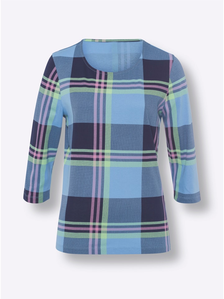 Любимое сочетание в клетчатом дизайне: приятная на ощупь рубашка с рукавами 3/4 из трикотажного полотна, выполненная из чистого хлопка.