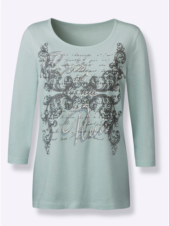 Чистый хлопок по отличной цене! Рубашка с декоративным принтом спереди. Модные рукава длиной 3/4.