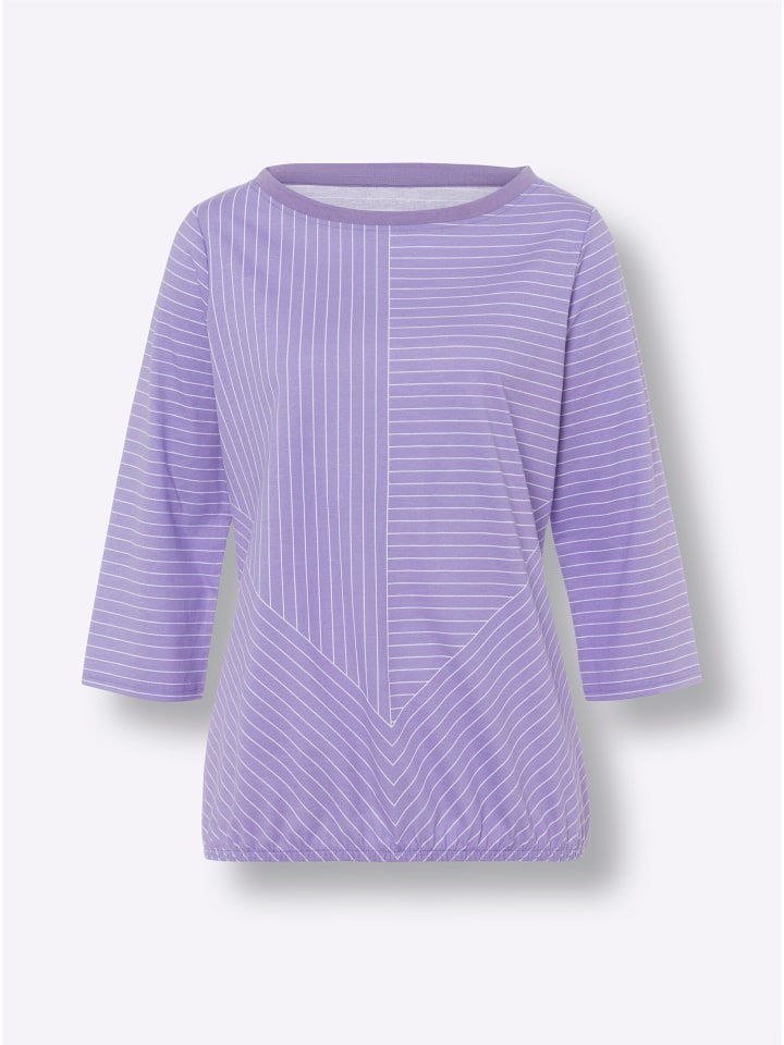 Хотите новую полоску? Как вам эта рубашка с рукавами 3/4? С круглым вырезом. Эластичный подол делает эту модель очень привлекательной.