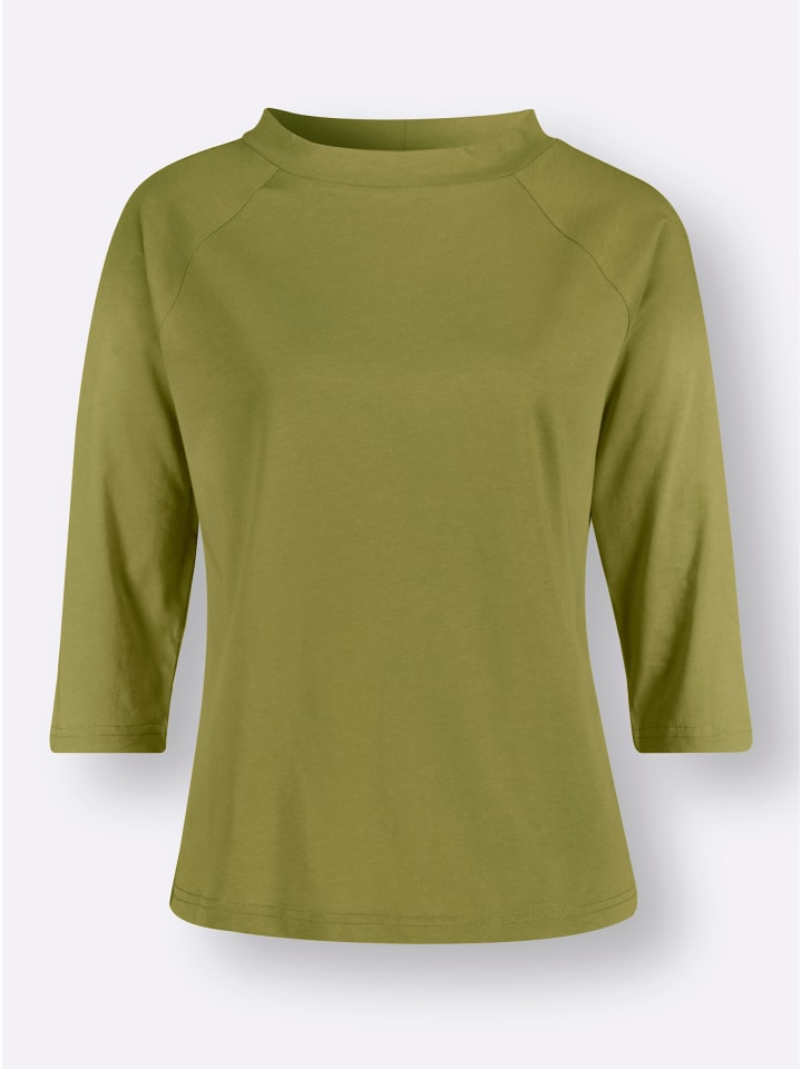 Эта рубашка со стильным воротником-бокалом - настоящий маст-хэв! Удобный крой с рукавами реглан длиной 3/4.