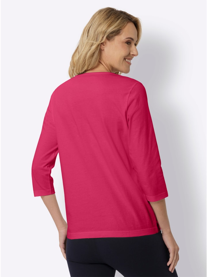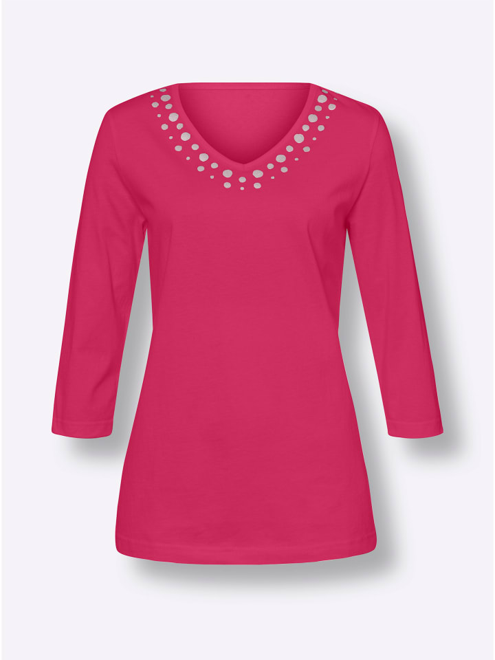 Какая выгодная покупка! Рубашка с рукавами 3/4 и стильным принтом серебряной фольги вдоль V-образного выреза.