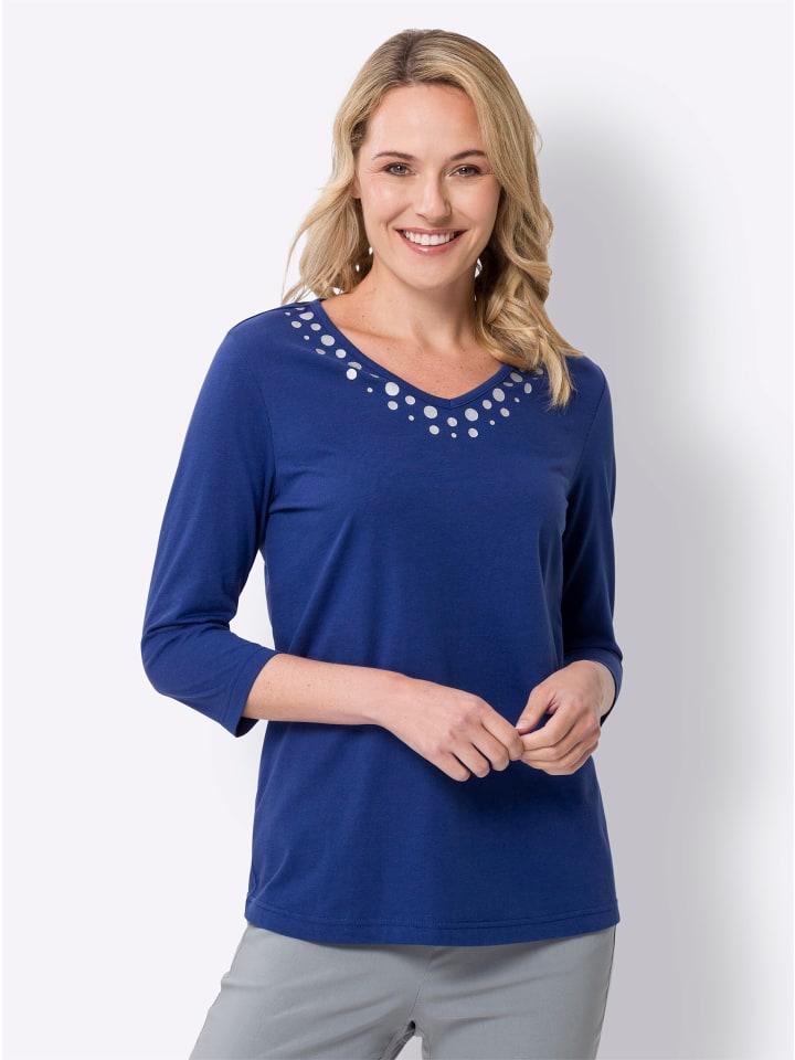 Какая выгодная покупка! Рубашка с рукавами 3/4 и стильным принтом серебряной фольги вдоль V-образного выреза.