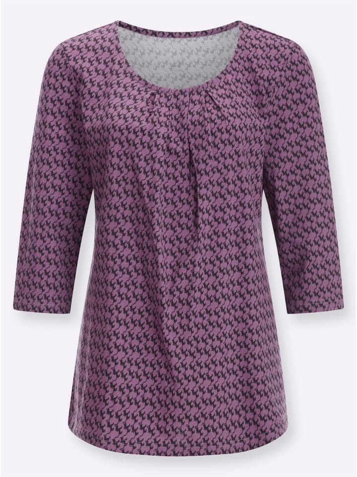Приятная на ощупь рубашка с рукавами 3/4 и милым принтом кота. Удлиненный крой слегка расклешен к низу.