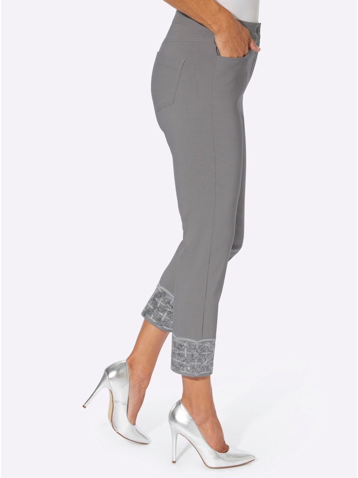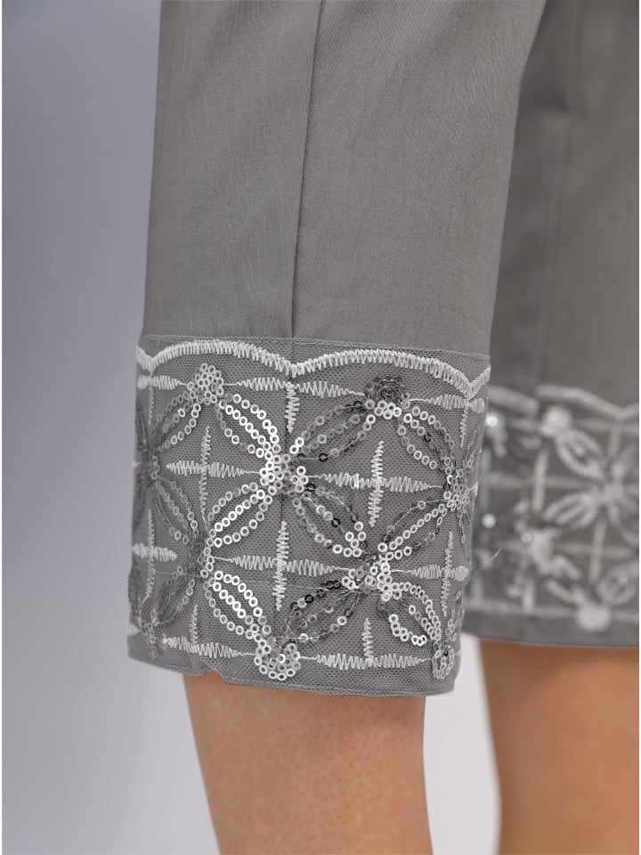Декоративная отделка пайетками делает эти брюки Bengaline длиной 7/8 настоящей приманкой для глаз. Фигурный пояс, застежка на пуговицу и молнию, два практичных кармана спереди, приталенная кокеточка и два накладных кармана сзади. Ширина по щиколотке около 36 см. - Украшены пайетками - Длина брюк 7/8. Состав: - 72% вискоза - 25% полиамид - 3% эластан.