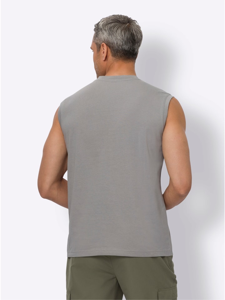 Спортивная майка с графическим принтом спереди и однотонной спинкой. V-образный вырез. Приятный для кожи материал.