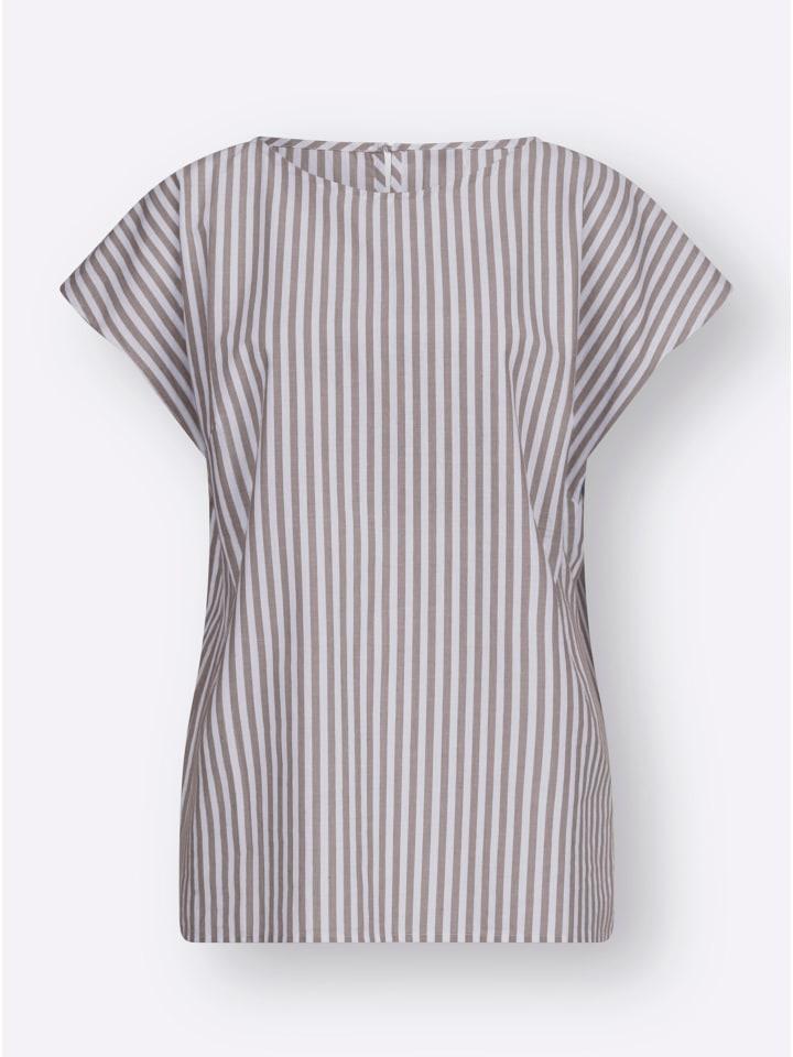 Эта блузка без застежки идеально подходит для повседневного образа. Сзади разрез и застежка на пуговицы. Круглый вырез горловины и спущенные плечи. Вытачка на груди обеспечивает идеальную посадку. Украшена полоской из пряжи.