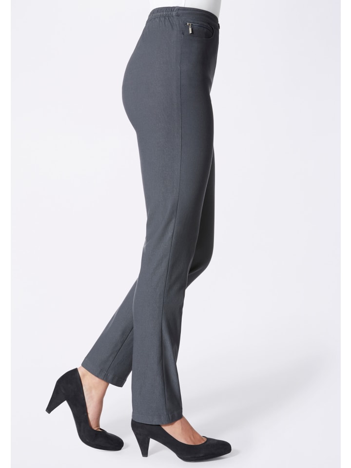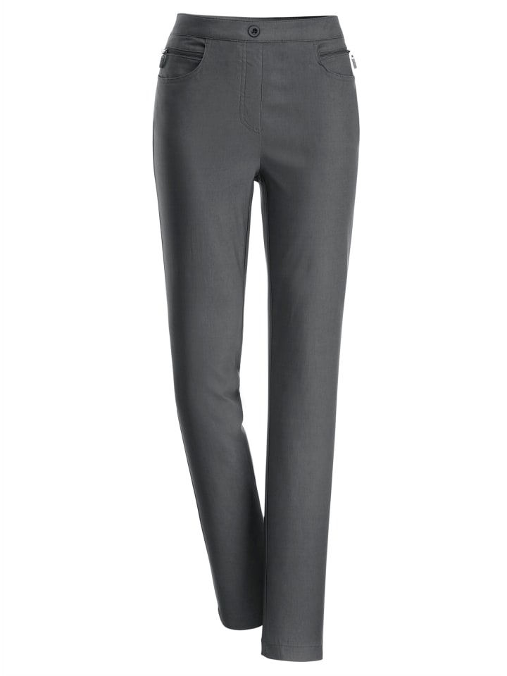 Эти элегантные брюки отлично сидят, идеально сидят и отлично держат форму! С эластичным поясом сзади, декоративной пуговицей и имитацией молнии спереди. 2 кармана и декоративные молнии спереди. Ширина до щиколотки примерно 36 см.