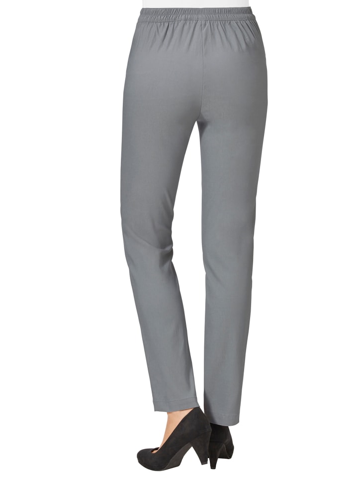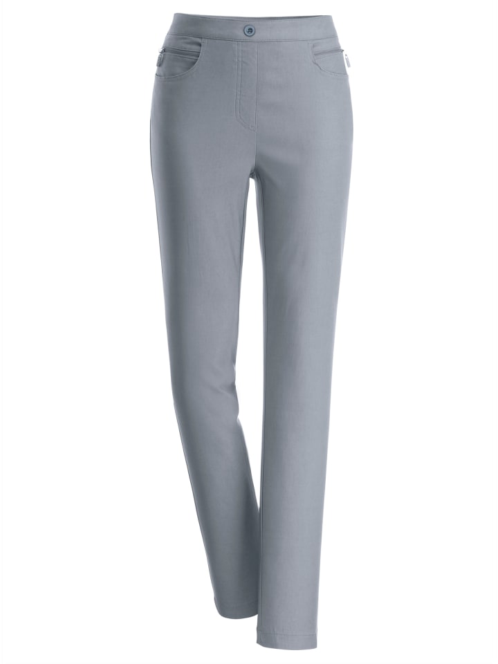 Эти элегантные брюки отлично сидят, идеально сидят и отлично держат форму! С эластичным поясом сзади, декоративной пуговицей и имитацией молнии спереди. 2 кармана и декоративные молнии спереди. Ширина до щиколотки примерно 36 см.