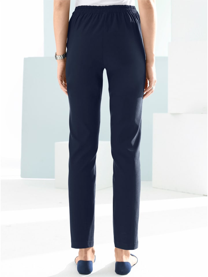 Эти элегантные брюки отлично сидят, идеально сидят и отлично держат форму! С эластичным поясом сзади, декоративной пуговицей и имитацией молнии спереди. 2 кармана и декоративные молнии спереди. Ширина до щиколотки примерно 36 см.