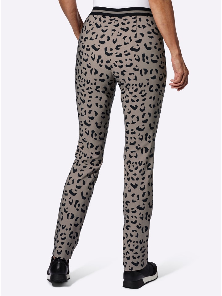 Удобные и при этом впечатляюще стойкие к форме: облегающие брюки Bengaline с популярным анималистичным принтом. Полосатый эластичный пояс обеспечивает дополнительный комфорт. Ширина до щиколотки: около 34 см.