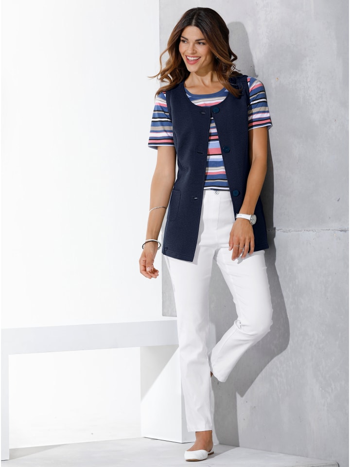 Эти элегантные брюки отлично сидят, идеально сидят и отлично держат форму! С эластичным поясом сзади, декоративной пуговицей и имитацией молнии спереди. 2 кармана и декоративные молнии спереди. Ширина до щиколотки примерно 36 см.