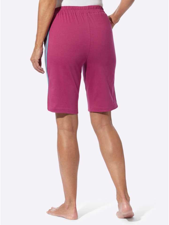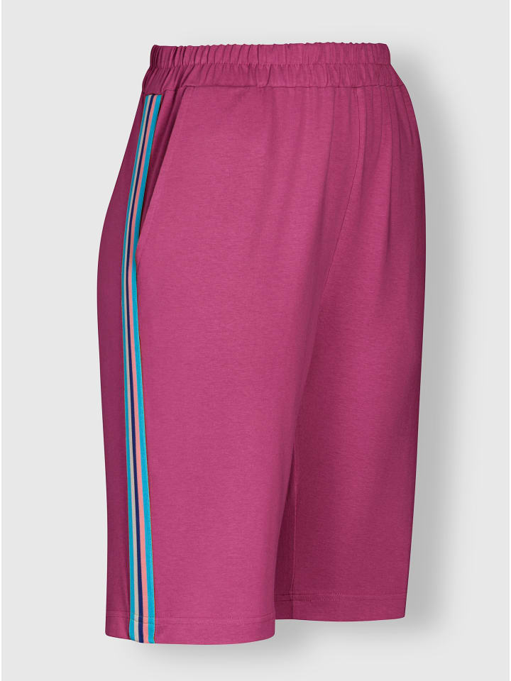 Контрастная полосатая полоска по боковому шву этих удобных шорт-бермуд для отдыха придает им спортивный вид и визуально удлиняет фигуру. Удобный пояс на резинке по всему периметру и два передних кармана.