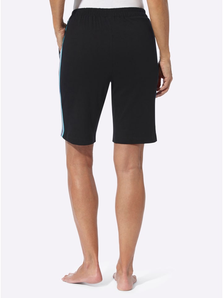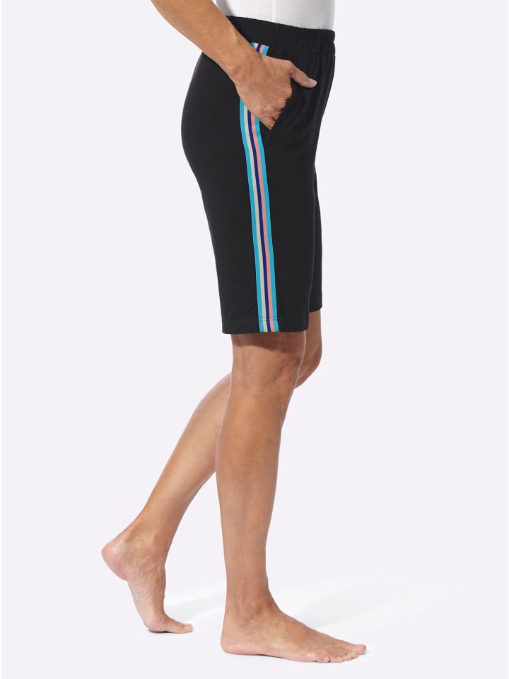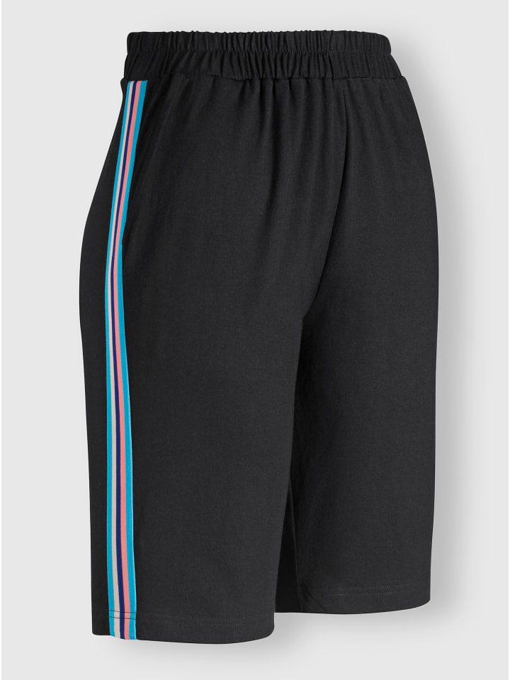 Контрастная полосатая полоска по боковому шву этих удобных шорт-бермуд для отдыха придает им спортивный вид и визуально удлиняет фигуру. Удобный пояс на резинке по всему периметру и два передних кармана.