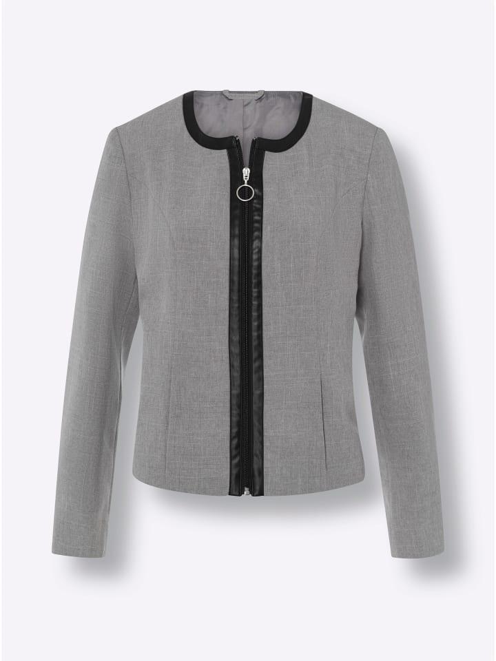 Блейзер с деталями из искусственной кожи на круглом вырезе и вдоль молнии. Подплечники и рельефные швы обеспечивают идеальную посадку. 2 кармана.