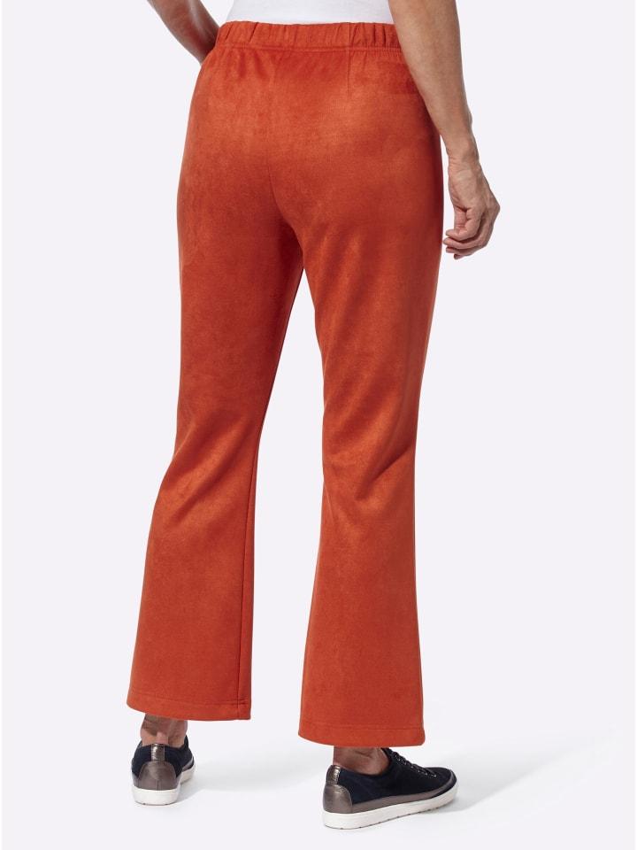 Эти брюки-клеш из бархатисто-мягкой, эластичной искусственной замши - универсальная вещь. Они отличаются модным кроем со слегка расклешенными штанинами. Удобная модель с эластичным поясом по всему периметру. Ширина до щиколотки: около 50 см.