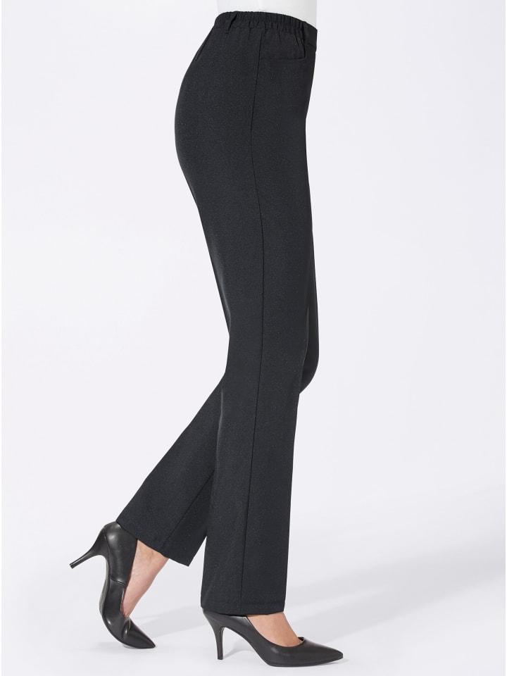 Изысканный вид, простота ухода: брюки с поясом на резинке по всему периметру и гладким клапаном спереди, шлевками для ремня и двумя передними карманами. Складки визуально удлиняют ноги.