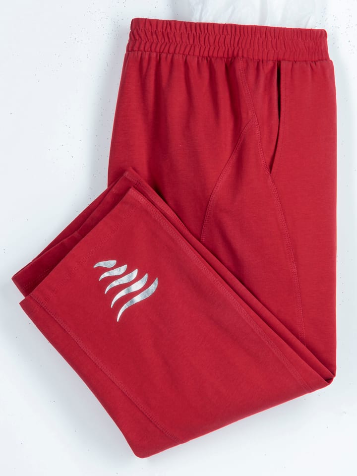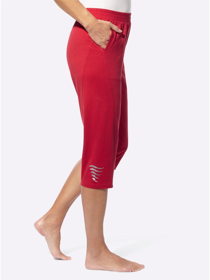 Продуманная отделка швов придает этим капри для отдыха облегающий вид: боковые швы закруглены спереди и сзади, визуально подчеркивая фигуру! Мерцающий принт на брючинах. Удобный эластичный пояс, 2 кармана.