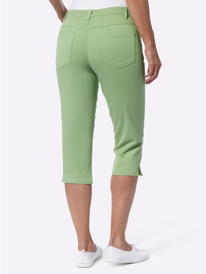 Наслаждайтесь прекрасной погодой всеми чувствами в этих удивительно удобных капри! Эластичный пояс сбоку со шлевками для ремня и застежкой на пуговицу и молнию. 2 передних кармана и 2 накладных кармана сзади. Небольшие разрезы по низу. Ширина до щиколотки примерно 41 см.